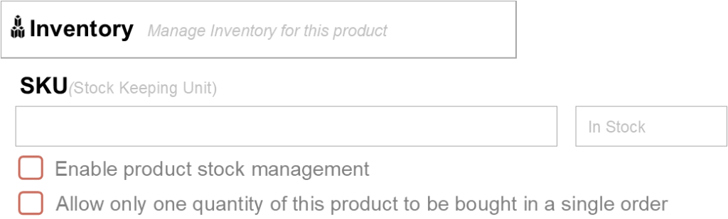 This section allows you to manage the availability of your product. Here you can enter the stock quantity, track how many items you have available, and control whether the product is in stock or out of stock.