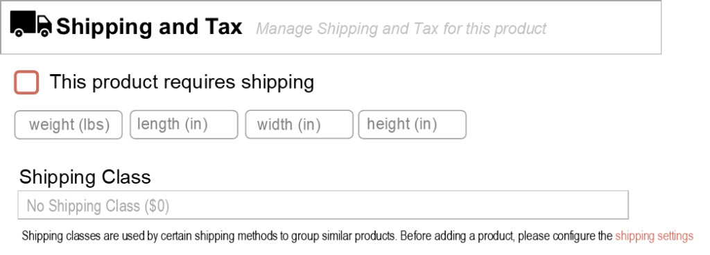 This section allows you to enter information related to how your product will be shipped and how taxes may apply. Set details such as the product weight, dimensions, and shipping class (if applicable) to help calculate shipping costs.